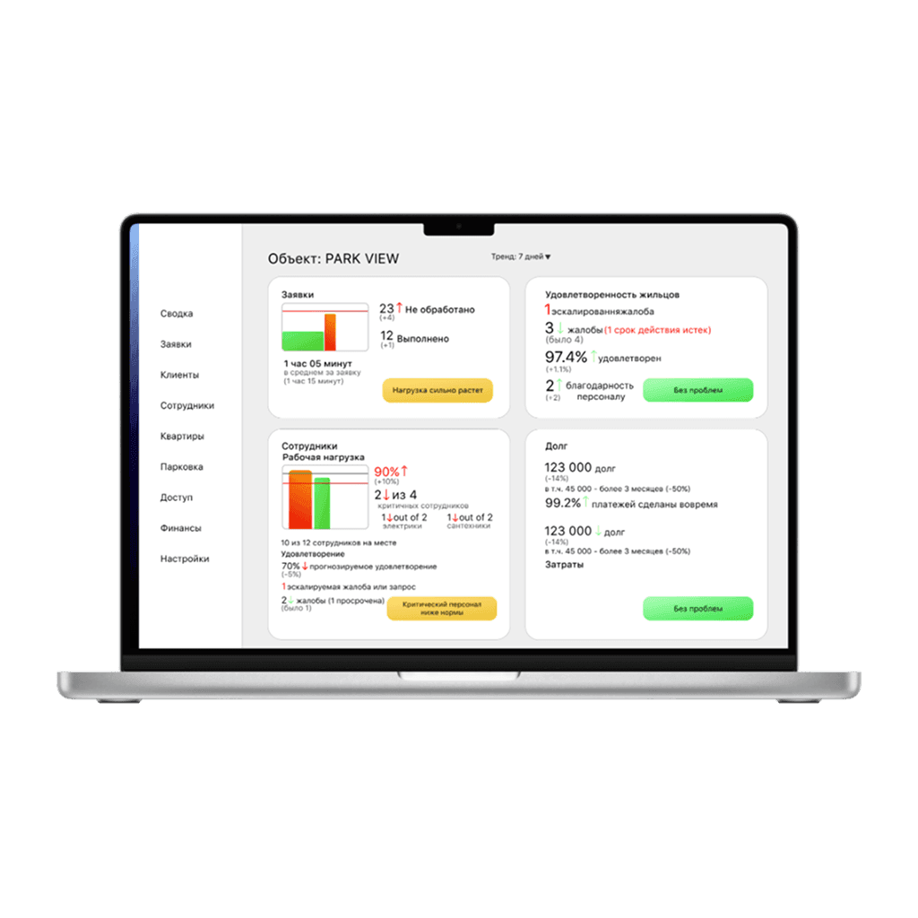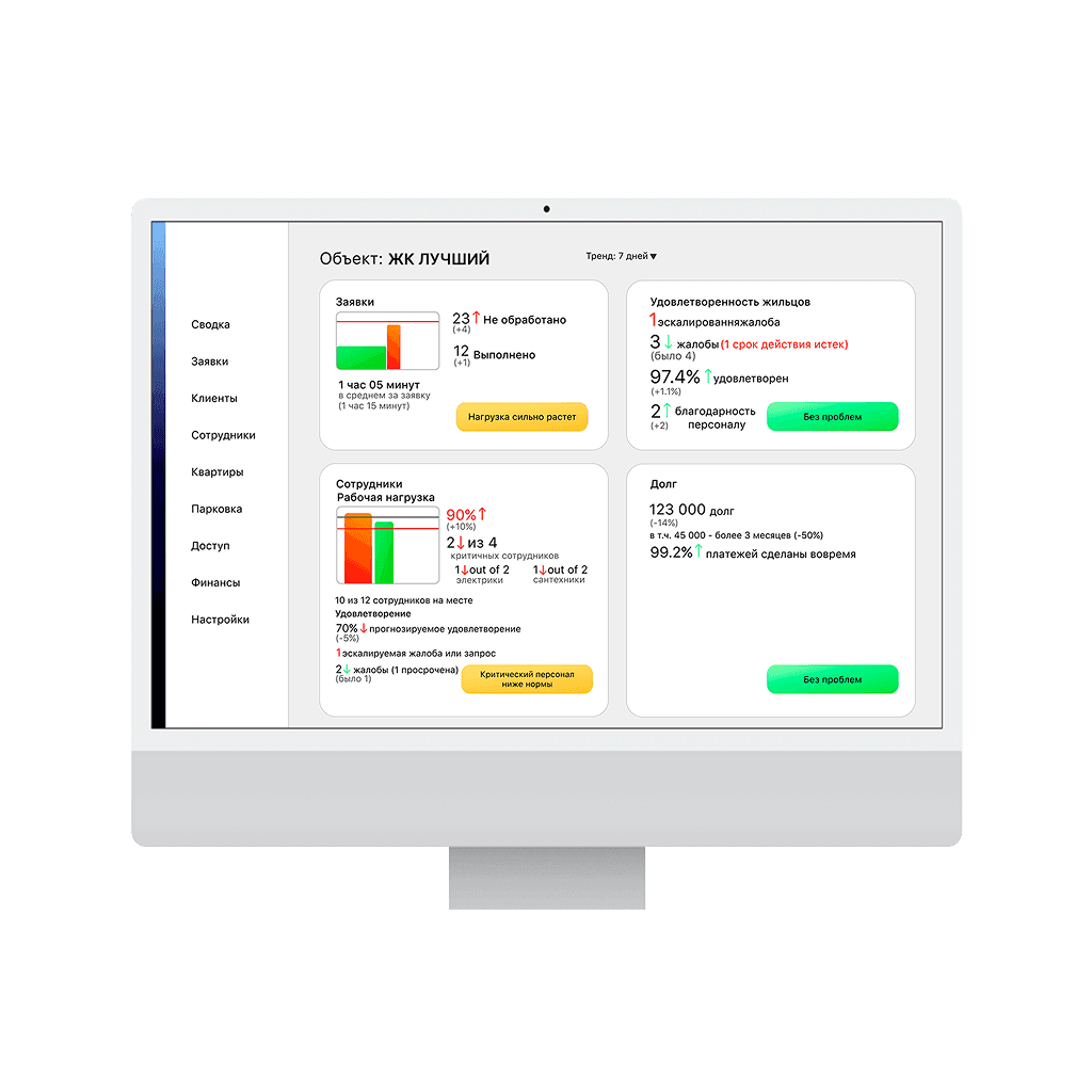 наглядная картина удовлетворенности жильцов и загрузки персонала