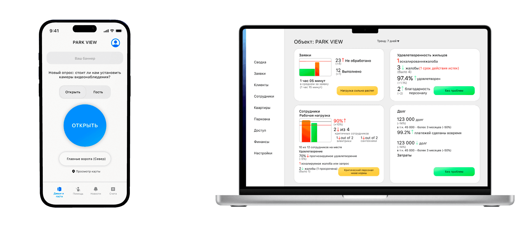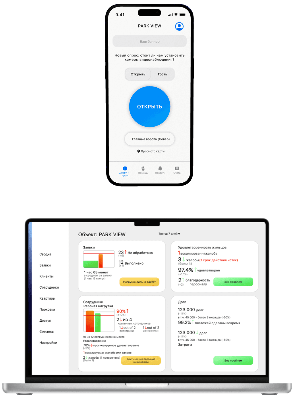 - Легко открыть ворота, разместить заявку в компанию, получить ответ, оценить сотрудника